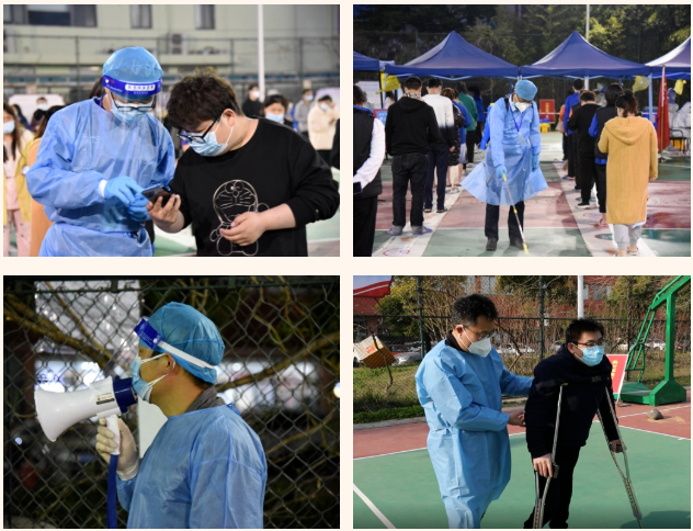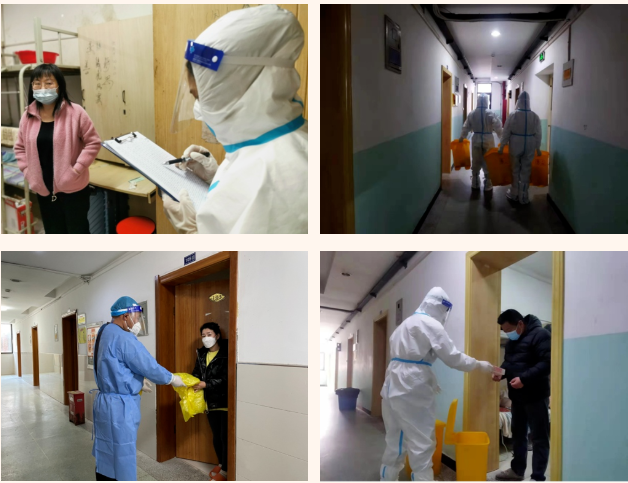 在這個(gè)集宿區(qū)內(nèi),有一群人奮戰(zhàn)在抗疫最前線。“大白”和“小藍(lán)”是他們最矚目的“通行證”、“工作證”,他們身份多樣,上演著超級“變、變、變”,他們既是細(xì)致入微的醫(yī)生助手,也是發(fā)放物資的大力水手,還是現(xiàn)場保障的行家里手。