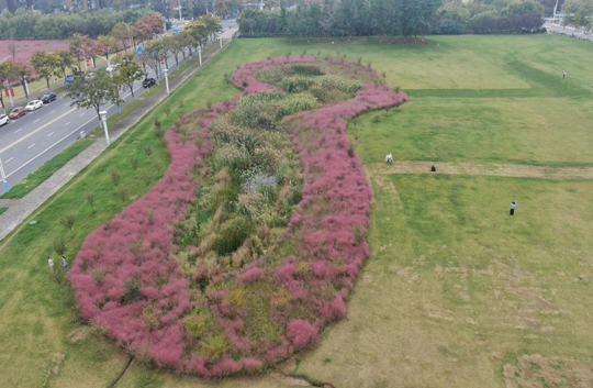 在中央商區(qū),成片的粉黛亂子草正值最佳觀賞期,云霧般的粉色花穗在陽光下輕盈搖曳,已成為市民爭相打卡的“網(wǎng)紅”景點。“粉黛亂子草觀賞性雖高,養(yǎng)護卻需格外精心。”建發(fā)公司相關(guān)負責人介紹,為維持其最佳觀賞狀態(tài),園區(qū)采取了分區(qū)、分時的精細化養(yǎng)護策略。盛花期期間,養(yǎng)護人員會精準控制澆水量,避免過多水分影響花穗形態(tài);雨季則及時排水,嚴防積水導致爛根。同時,還安排了專人全天巡視,引導游客在指定區(qū)域文明觀賞,并對局部受損區(qū)域?qū)嵤?ldquo;點對點”修復,確保每一株粉黛都能以最美姿態(tài),展現(xiàn)秋天的溫柔與浪漫。