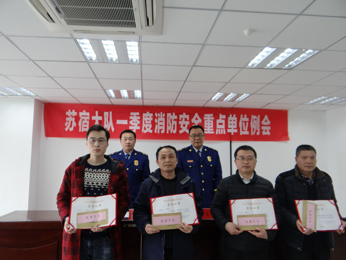 本次評選,對2018年消防工作成績突出的3家先進(jìn)單位和4名先進(jìn)個人予以通報表彰。表彰會上,園區(qū)消防大隊(duì)對公司的消防安全工作表示肯定,同時也對獲得的榮譽(yù)表示祝賀。