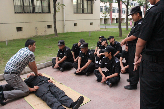 培訓過程中,消防安全主管對各個操作要領(lǐng)進行逐一講解并實際操作演示,各參訓人員依次進行心臟復蘇模擬實踐。通過培訓,強化了保安員的現(xiàn)場急救意識,基本掌握了操作要領(lǐng),起到了良好的急救知識科普教育效果。