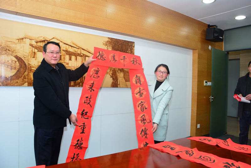“勤儉持家家興旺,清廉愛國國運(yùn)昌”“辭舊迎新山清水秀景色美,繼往開來全民尚廉風(fēng)氣新”……為進(jìn)一步加強(qiáng)春節(jié)前后反腐倡廉宣傳教育,營造濃厚的節(jié)日倡廉氛圍,在農(nóng)歷酉雞年即將來臨之際,園區(qū)組織黨員干部和社區(qū)居民書法愛好者開展寫廉政春聯(lián)活動(dòng)。副市長、園區(qū)黨工委、管委會(huì)主任方文浜等工委領(lǐng)導(dǎo)親自為園區(qū)干部群眾送上新春廉聯(lián)。
